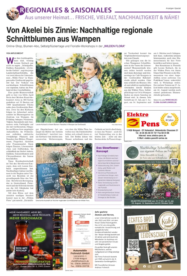 Lokale Sonderseiten in der Ausgabe Mecklenburg und/oder Vorpommern