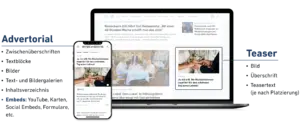 Erfolgreich durch leistungsstarke Advertorials. Advertorials sind vielseitig, wirkungsvoll, zielgerichtet und einsetzbar für jedes Werbeziel. Erreichen Sie Ihre Kundinnen und Kunden mit maßgeschneiderten Inhalten auf unseren Nachrichtenportalen.