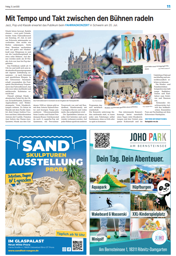 Mit dem Erlebnissommer bieten wir unseren Leserinnen und Lesern Tickets für die beliebtesten Freizeitangebote in Mecklenburg-Vorpommern zum halben Preis. Als Partner profitieren Sie von hoher Aufmerksamkeit, zahlreichen Besuchenden und einer attraktiven Präsentation in unserer Sonderbeilage im gesamten Verbreitungsgebiet der OSTSEE-ZEITUNG.